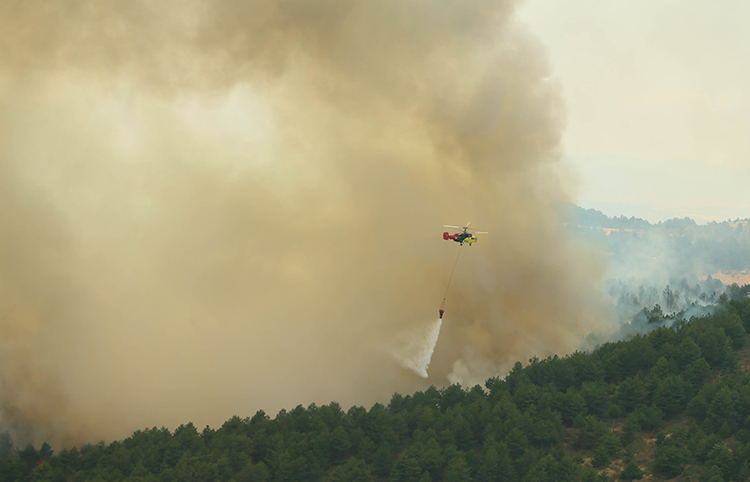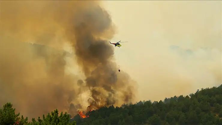 İhbar üzerine bölgeye 2 helikopter ve Orman İşletme Müdürlüğü'ne bağlı çok sayıda arazöz sevk edildi.