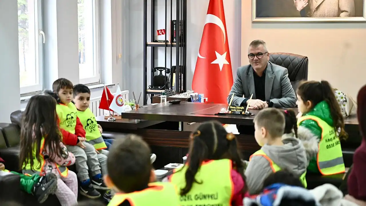 Seydişehir Belediye Başkanı Hasan Ustaoğlu, kendisinin ziyarete gelen minik misafirlerini makamında ağırladı.