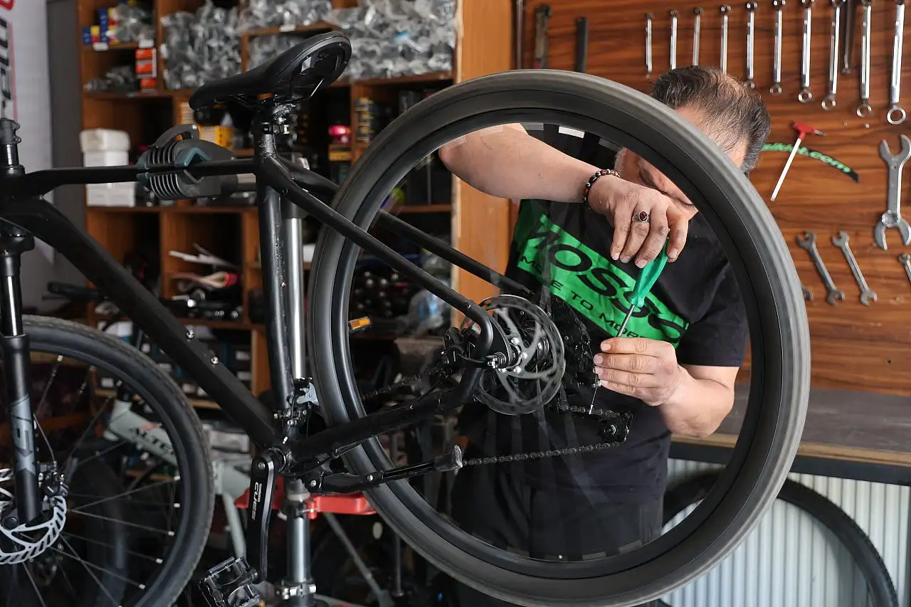 Havaların ısınmasıyla beraber bisiklet kullanımına olan yoğun ilgiden dolayı bisikletlerin hem verim hem performans hem de güvenlik açısından bakımlarının yapılması gerektiğini belirten bisiklet bakım ve tamir ustası Mustafa Aka, "Bu bakımlar 6 aylık periyodik zamanlar şeklinde yapılır. 6 ayda bir periyodik bakım yaptırılması hem bisiklet parçalarının korunması hem güvenlik hem de sürüş konforu açısından önemli. Müşterilerin 6 aylık bakımlara geldikleri zaman ön ve arka tekerleklerin akort ayarları, bisiklette bulunan toplam 4 tane haznenin yağlanması, eski yağlarını temizleyip yeniden yağlanması, sorun varsa giderilmesi, fren ayarları ve vites ayarı olarak komple bakıma alıyoruz. Kullanıcılara hem daha konforlu hem de daha güvenlikli bir sürüş sağlamış oluyoruz. Korozyon oluşur, aşınan metaller olur. Metallerdeki aşınma da güvenlik açısından çok önemli. Aşınan metaller, sürücün güvenliğini tehlikeye sokar. Bugün tutmayan bir fren, sürücü için her zaman risktir ya da doğru dönmeyen bir tekerlek, düşmesine sebep olabilir. Bu bakımların ihmal edilmemesi şart" dedi.