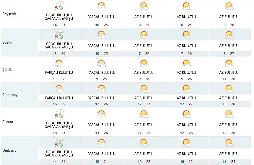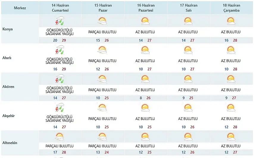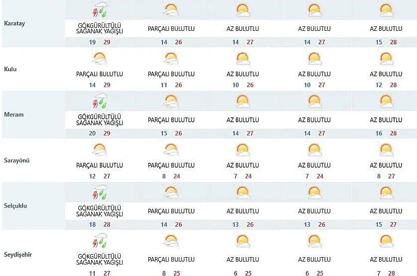 İŞTE KONYA VE İLÇELERİNDE HAVA DURUMU TAHMİNLERİ: