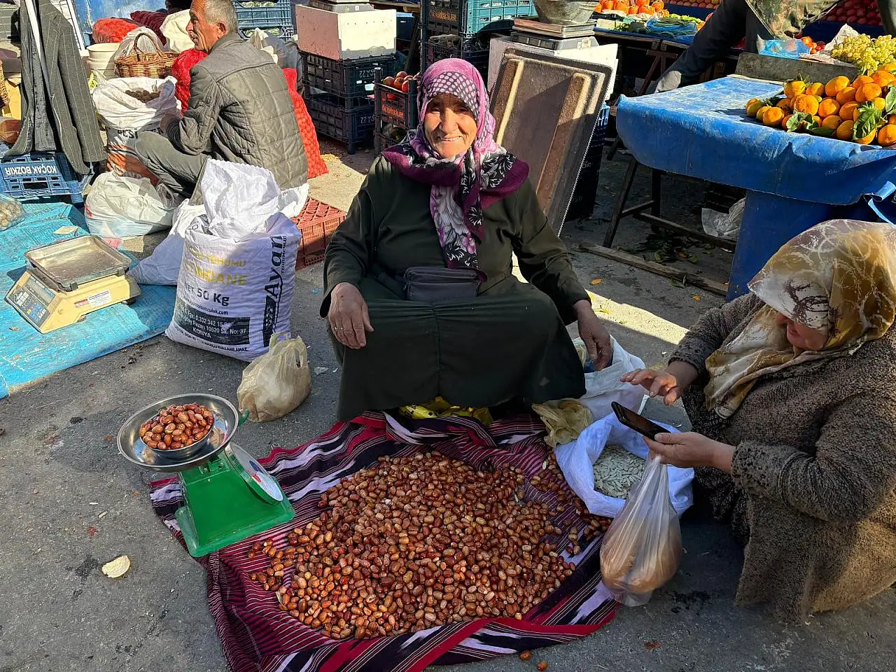 Konya’da semt pazarında kendi bahçesinde yetiştirdiği iğdeleri satan Ayşe Yılmaz,