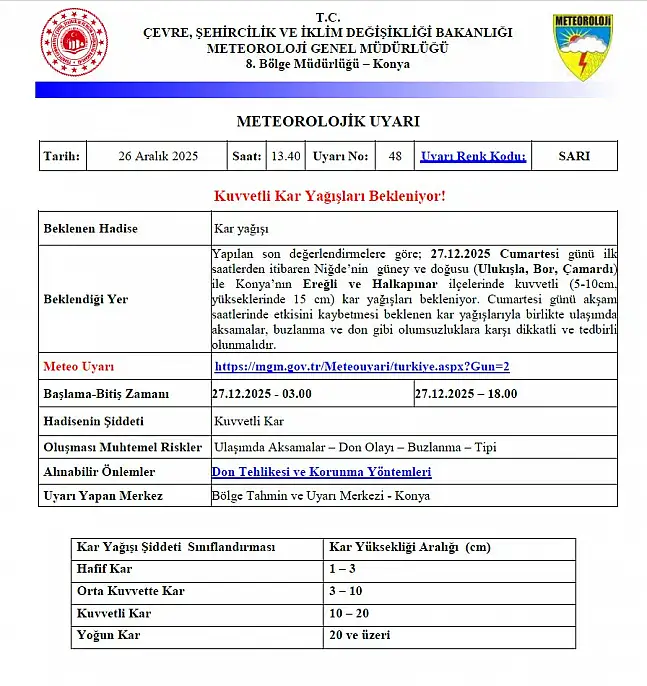 - Valilik Konya'ya saat ve ölçü verdi! 2 ilçeye kuvvetli kar geliyor!