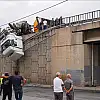 Viyadükte asılı kalan tırın sürücüsü yaralandı