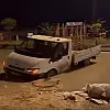 O sırada güzergahtan geçen bir kamyonet, zemin aniden çökünce yolda mahsur kaldı.