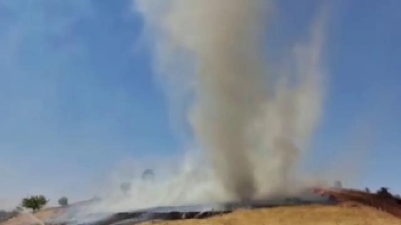 Rüzgarın da etkisiyle şiddetlenen yangın sırasında bir anda duman hortumu çıktı. Yangın esnasında çıkan hortum, metrelerce yükseğe ulaştı.