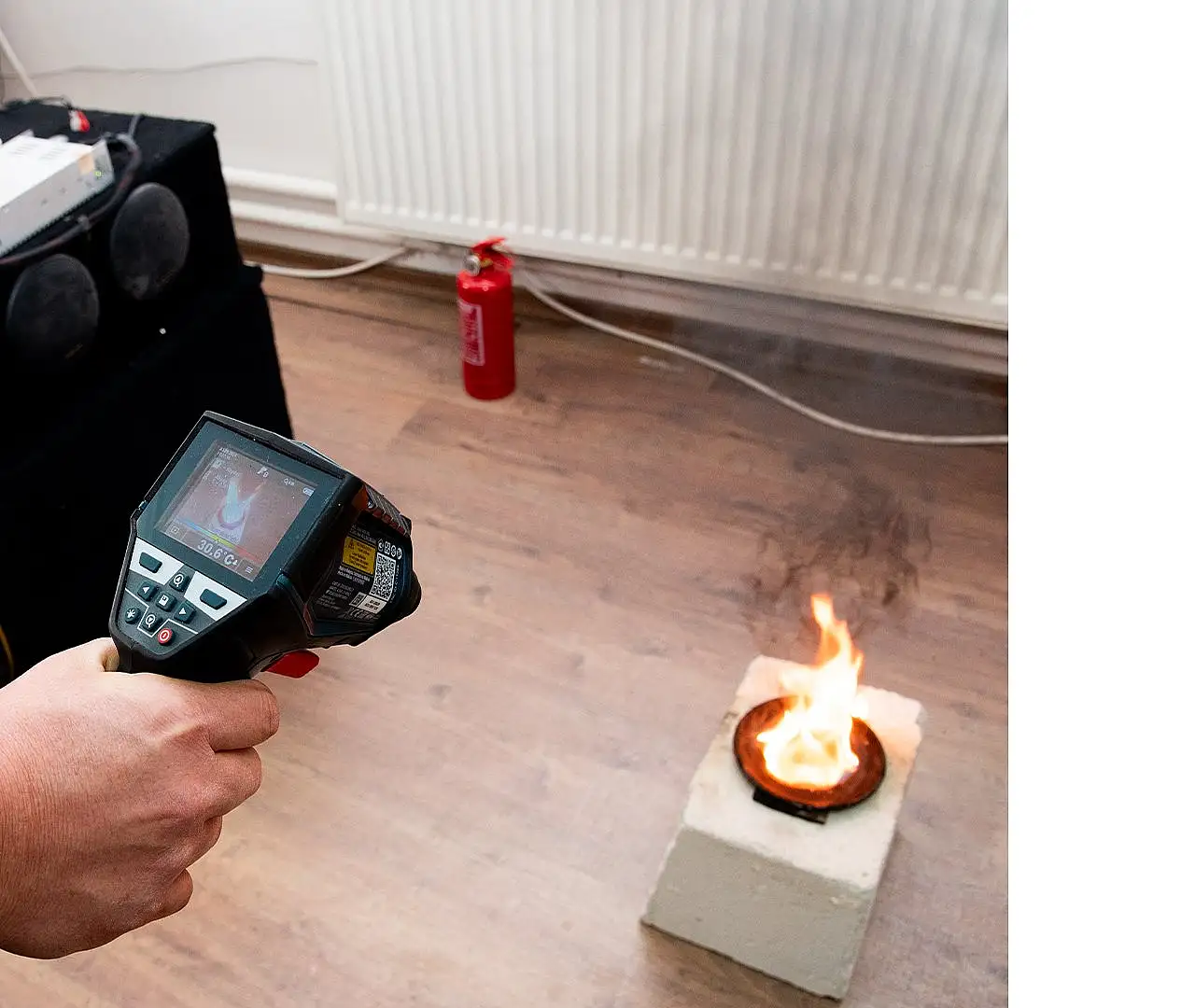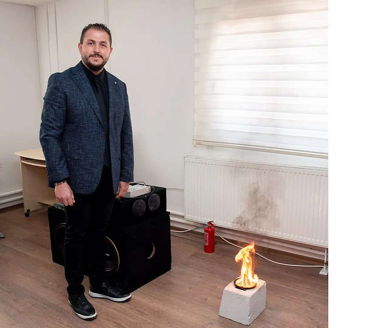 “Yazılım tarafından tespit edilen yangını, ses dalgalı yangın söndürme sistemi ile söndürebiliyoruz. Bu çerçevede Konya Teknik Üniversitesi Teknik Bilimler Meslek Yüksekokulu Müdürü Prof. Dr. Mustafa Altın’ın inşaat ve yangın alanındaki tecrübelerinden faydalanarak deneyler gerçekleştirdik. Deneyler öncesinde özel olarak yangın odası inşa ettik. Ses dalgalı yangın söndürme sistemi oluşturuldu ve farklı ses frekansı, mesafe, yakıt ve alev büyüklüklerinde toplam 17 bin 442 deney gerçekleştirildi”