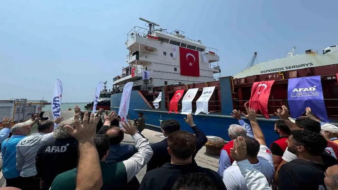 Organizasyonda emeği geçenlere teşekkür eden Memiş, "İnşallah bu yardımlar artarak devam eder" dedi. Konuşmanın ardından dua edilerek 2 bin 408 ton yardım malzemesi taşıyan "Sardes" adlı gemi limandan uğurlandı. Törene protokolün yanı sıra yardım malzemesi desteğinde bulunan sivil toplum kuruluşu temsilcileri de katıldı.