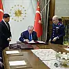 Cumhurbaşkanlığı resmi internet sitesi "www.tccb.gov.tr" adresinden Cumhurbaşkanı Erdoğan'ın YAŞ kararlarını imzaladığı ana ilişkin fotoğraf paylaşıldı.