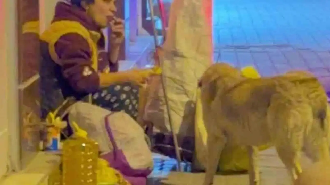 Hatay'ın İskenderun ilçesinde yediği yemeği sokak köpeğiyle paylaşan Ayşe Aslan'ın görüntüsü yürekleri ısıttı.