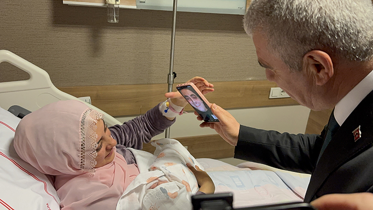 Anneyi hastanede ziyaret eden Konya Valisi İbrahim Akın, Zümra bebeğin Adana'da uzman çavuş olarak görev yapan babası Emre Yorgancı'yı cep telefonundan görüntülü arayarak tebrik etti.