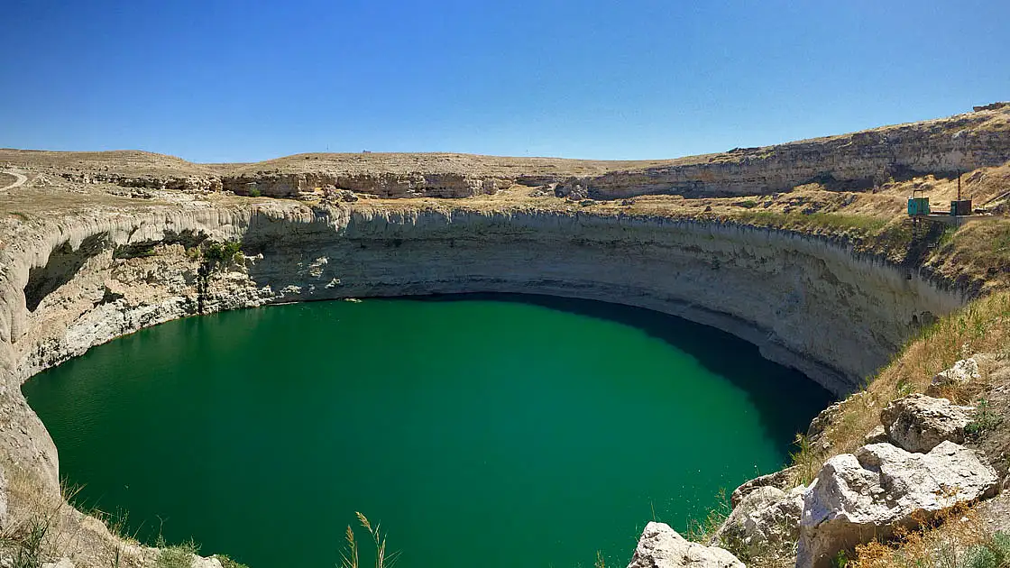, Konya’nın Karapınar ilçesinde yer alıyor. Göz alıcı maviliği, neredeyse kusursuz dairesel şekli ve çevresindeki sessiz doğasıyla bu göl, “yer altındaki cennet” olarak anılıyor.