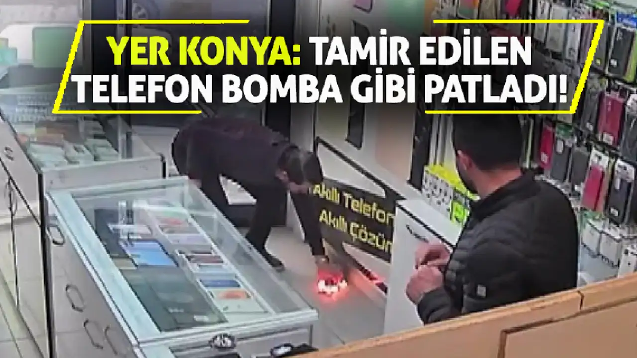 Konya’nın Beyşehir ilçesinde bir cep telefonu tamiri esnasında yaşanan patlama paniğe neden oldu. Tamir için iş yerine bırakılan telefonun bataryası alev alırken, yaşanan korku dolu anlar güvenlik kamerası tarafından saniye saniye kaydedildi.