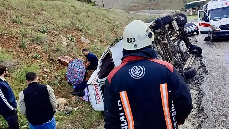 Malatya'da bir yolcu minibüsü virajı alamayarak direksiyon hakimiyetini kaybedince devrildi. Kazada biri ağır 12 kişi yaralandı.