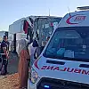 Sürücüleri henüz belirlenemeyen yolcu otobüsü, Afyonkarahisar-Antalya kara yolu Ekinova köyü yakınlarında pelet yem yüklü 03 ABG 940 plakalı tıra arkadan çarptı.
