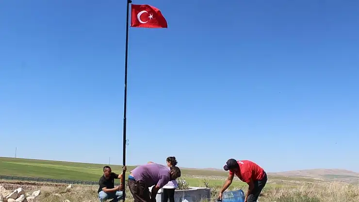 İlçe Jandarma Komutanlığı ve itfaiye ekipleri, vinç yardımıyla bayrağı yeniden yerine çekti.Jandarma personeli, bayrağın göndere çekilmesinin ardından saygı duruşunda bulundu.