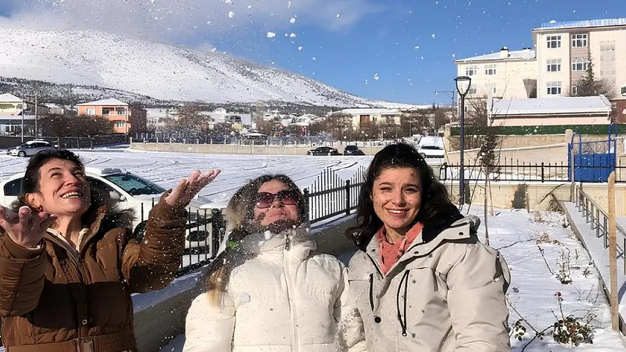 - Yunak'ta sağlık çalışanları kar yağışının keyfini çıkardı