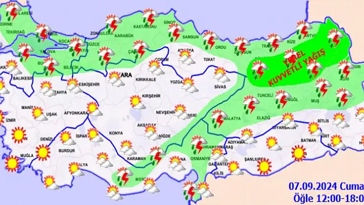Yağışların, Gümüşhane, Bayburt, Erzincan, Erzurum, Kars ve Ardahan çevrelerinde yer yer kuvvetli olması bekleniyor.
