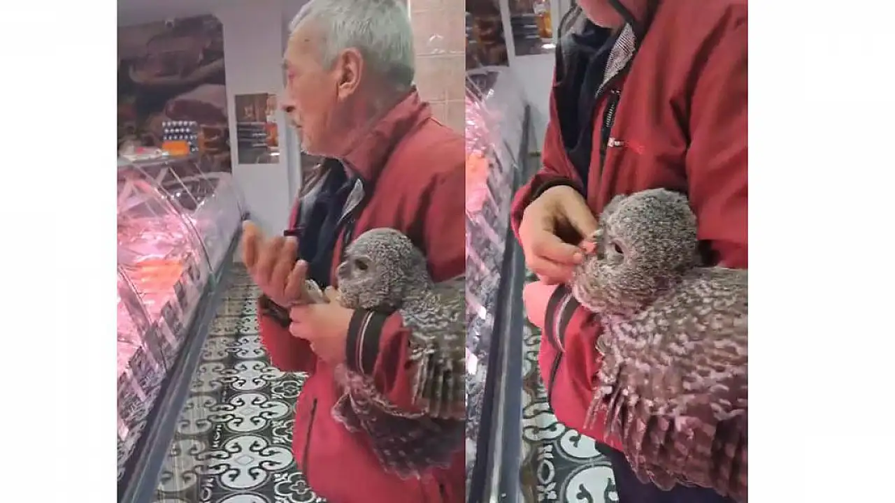 Yuvasından düşen yavru baykuşu kasaba götürüp etle beslediler