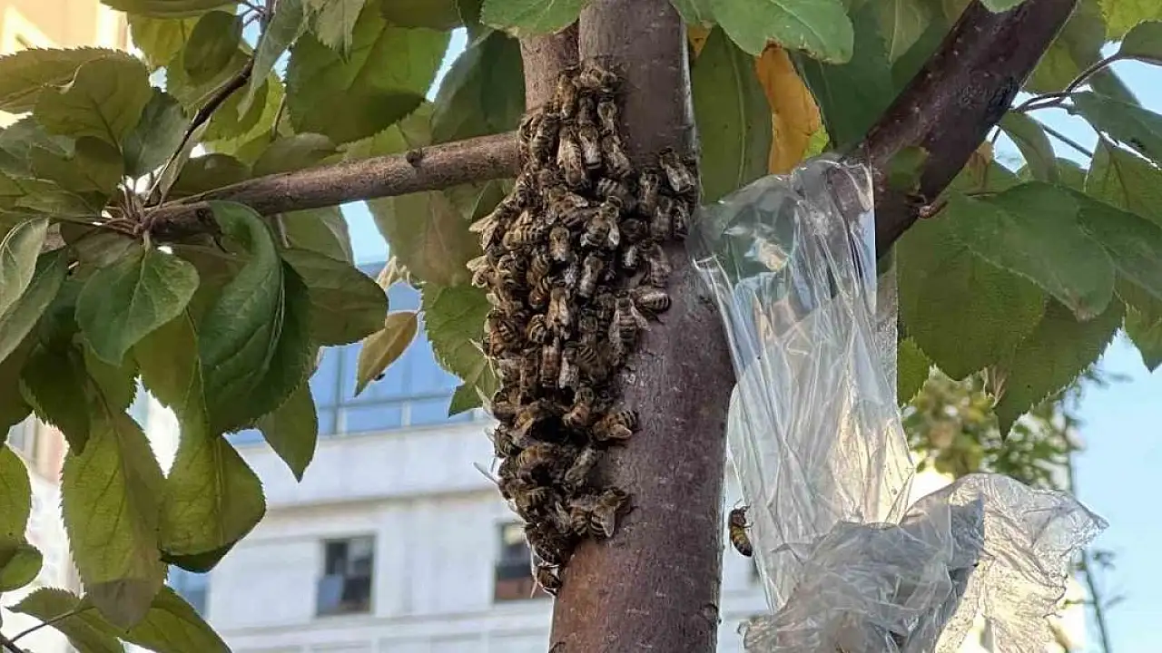 Yüzlerce bal arısı şehir merkezindeki parkı mesken tuttu