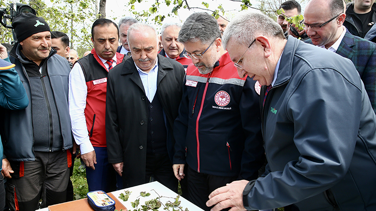 Bakan Yumaklı, merkeze bağlı Sıvacı köyünde zirai dondan etkilenen fındık bahçesinde incelemelerde bulundu, ilgililerden ve üreticilerden son duruma ilişkin bilgi aldı.
